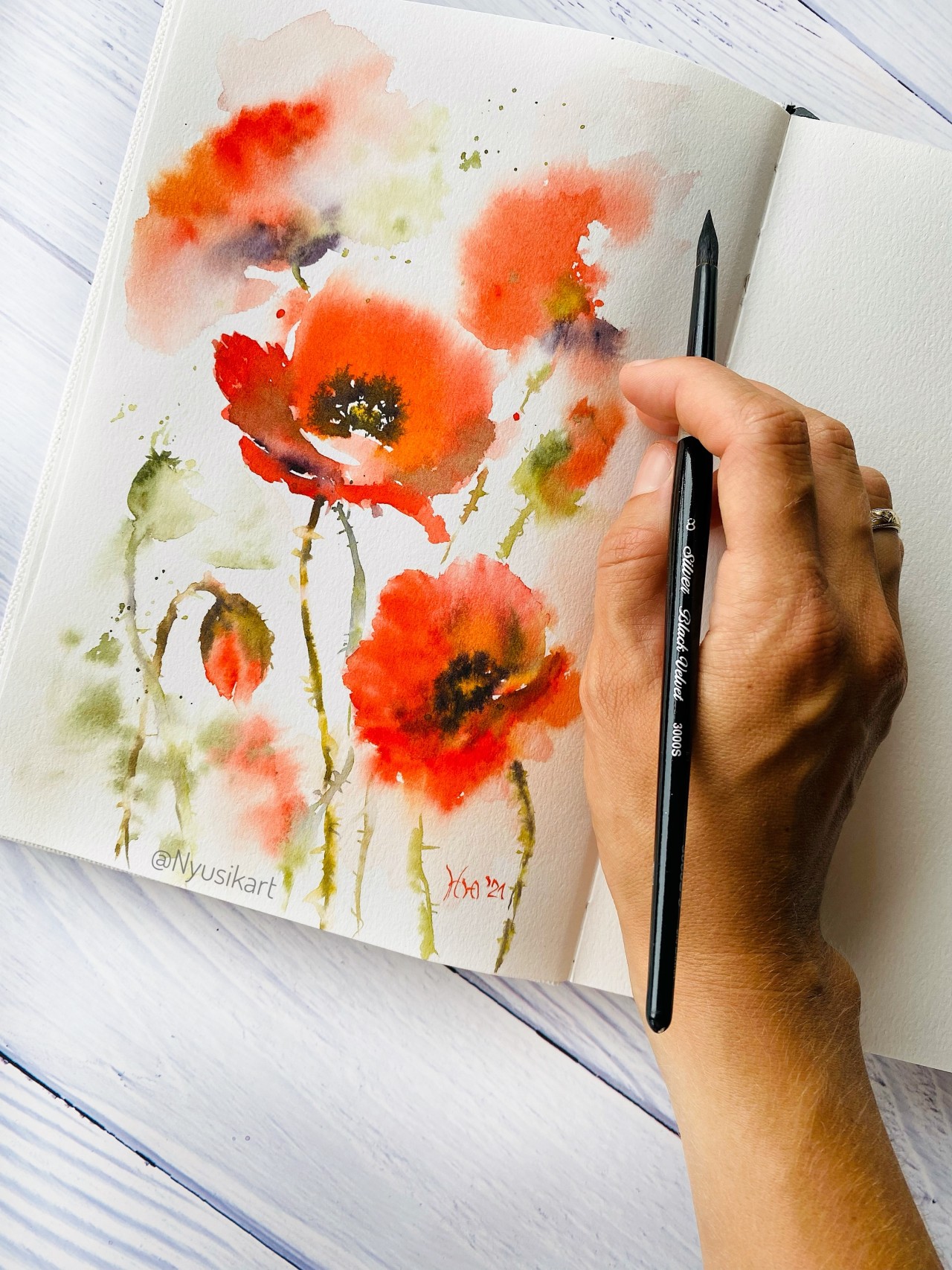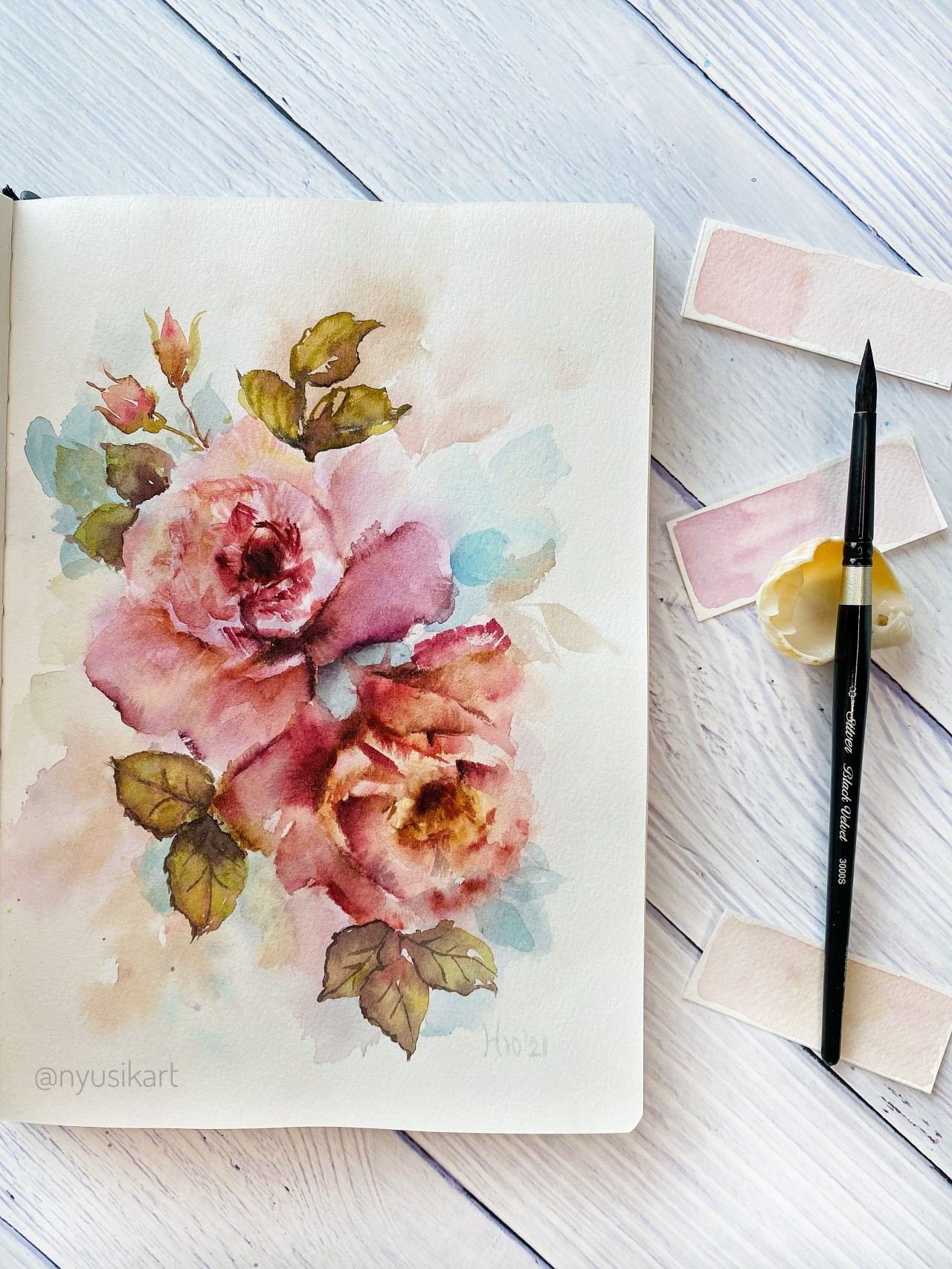 During my maternity leave, I rediscovered my love for watercolor, especially the loose, floral style. This style allows me to express myself freely, letting water and pigments flow naturally. My grandfather and I used to draw together, and those childhood drawings are some of my most cherished treasures.